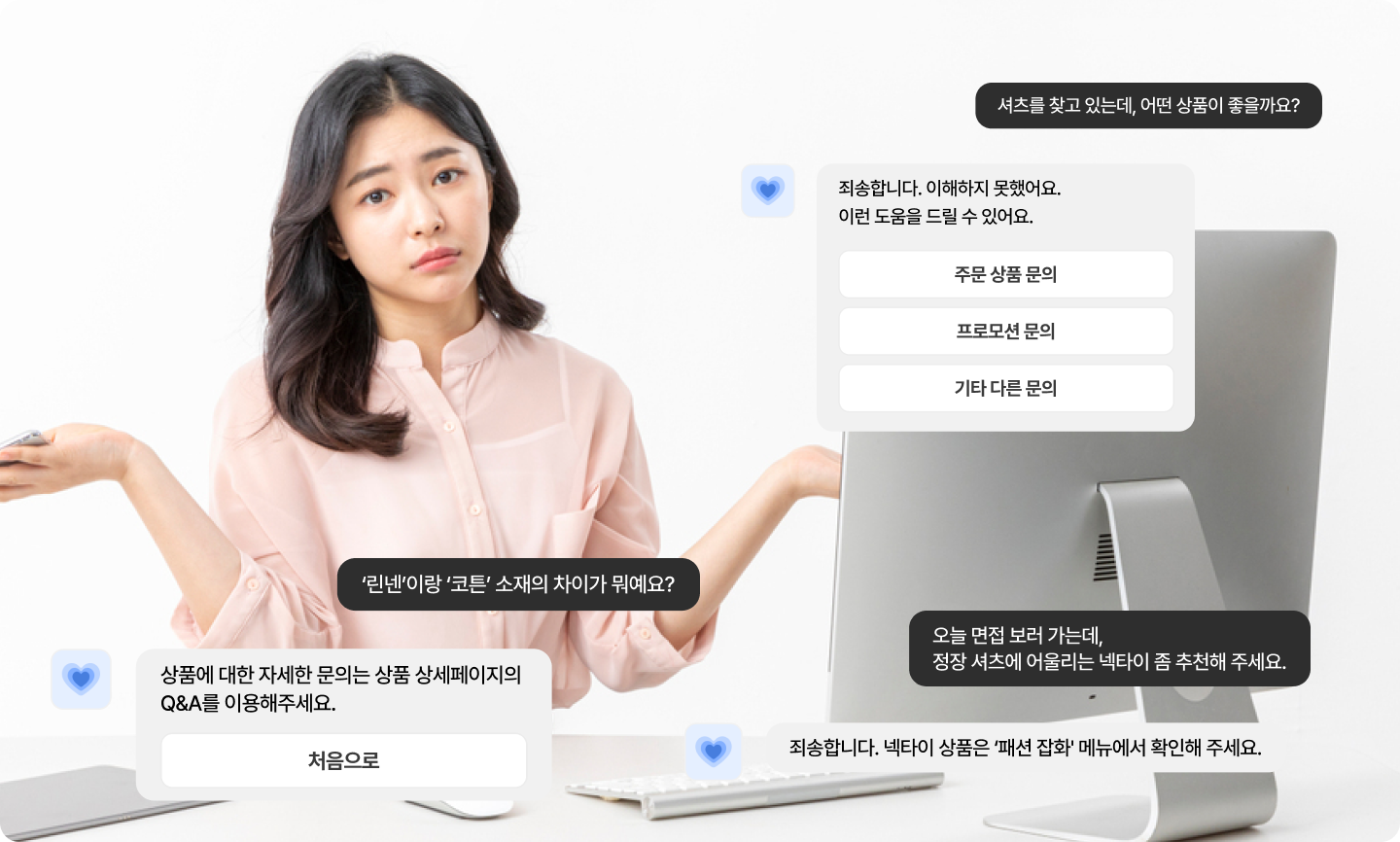 아무리 상세 페이지에 많은 정보를 담아 놓아도 고객들은 자신의 개별적인 상황과 맥락에 기반한 질문을 끊임없이 제기합니다. “우리 집 소파 색깔과 이 러그가 어울릴까요?”, “이 옷을 결혼식 하객룩으로 입으려면 어떻게 코디해야 하나요?”와 같은 질문들입니다. 이러한 개인화된 질문은 결국 라이브 채팅이나 콜센터로 유입되어 운영 비용을 증가시킵니다.